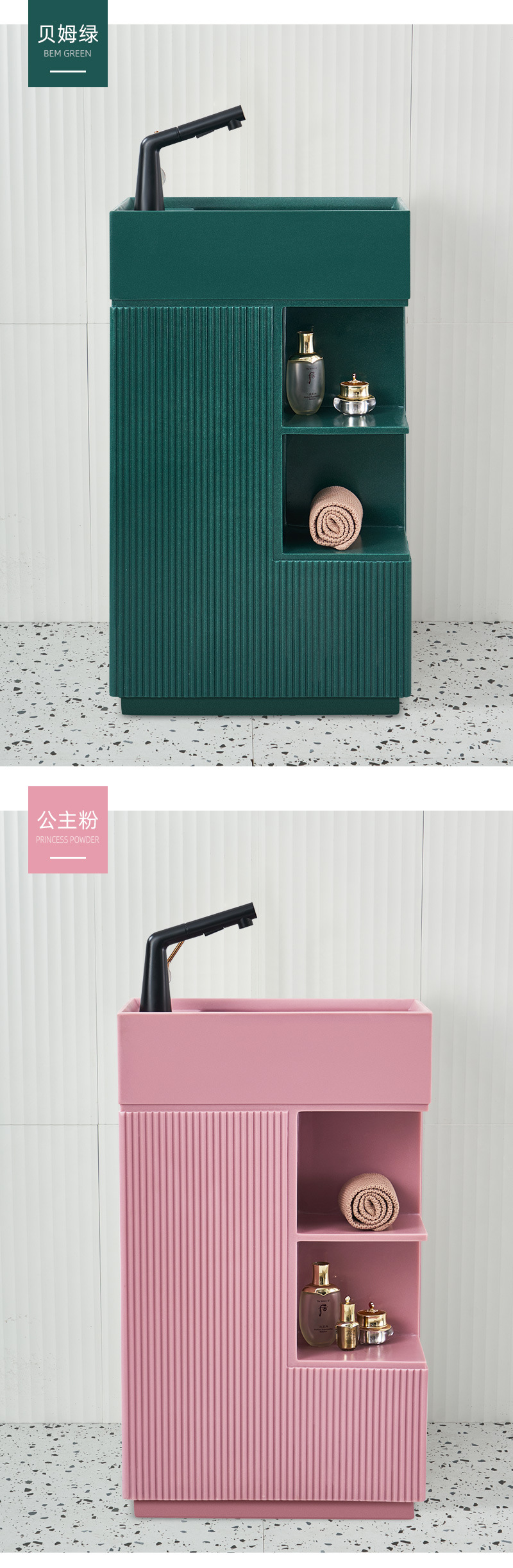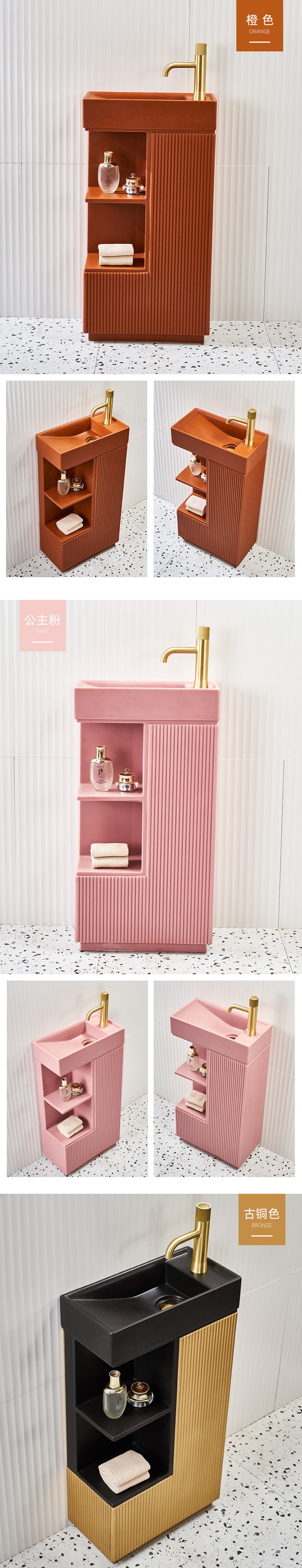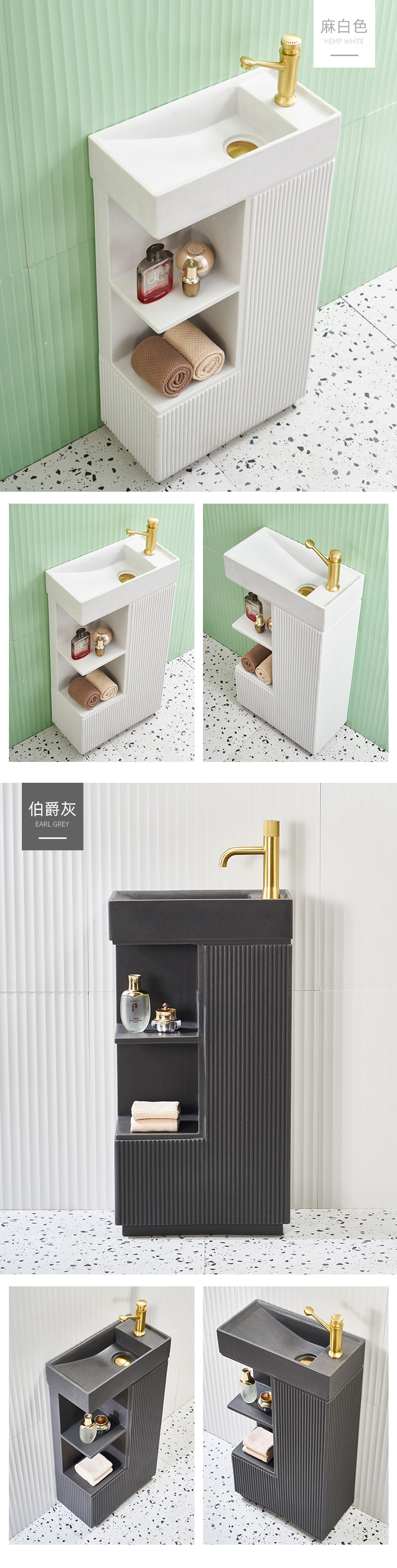 Bathtub Sink Artificial Stone with Side Cabinet Washbasin